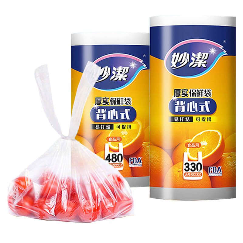 妙洁点断式厚实背心保鲜袋中号大号组合装810只