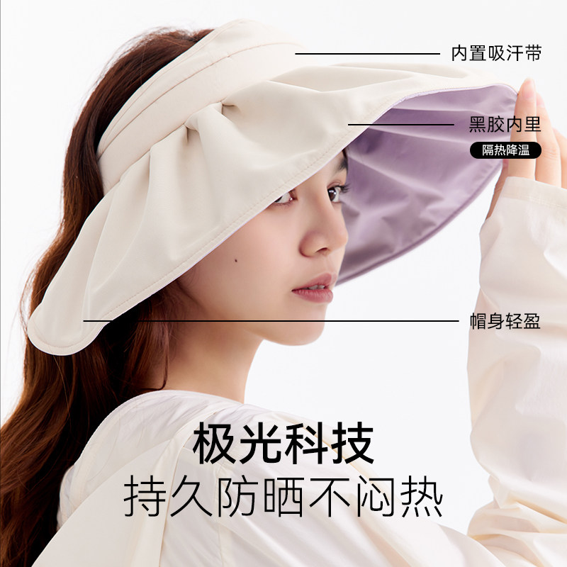 ohsunny渐变防晒云贝帽防紫外线大檐空顶遮阳黑胶贝壳帽