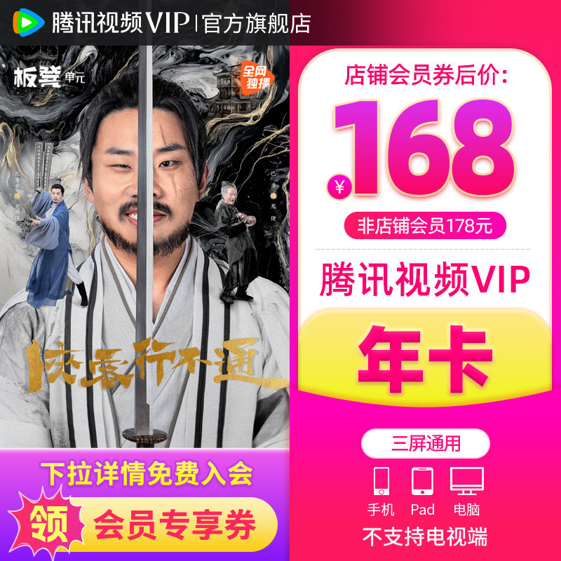 【会员价168元】腾讯视频VIP会员12个月1年卡腾讯会员雁回时