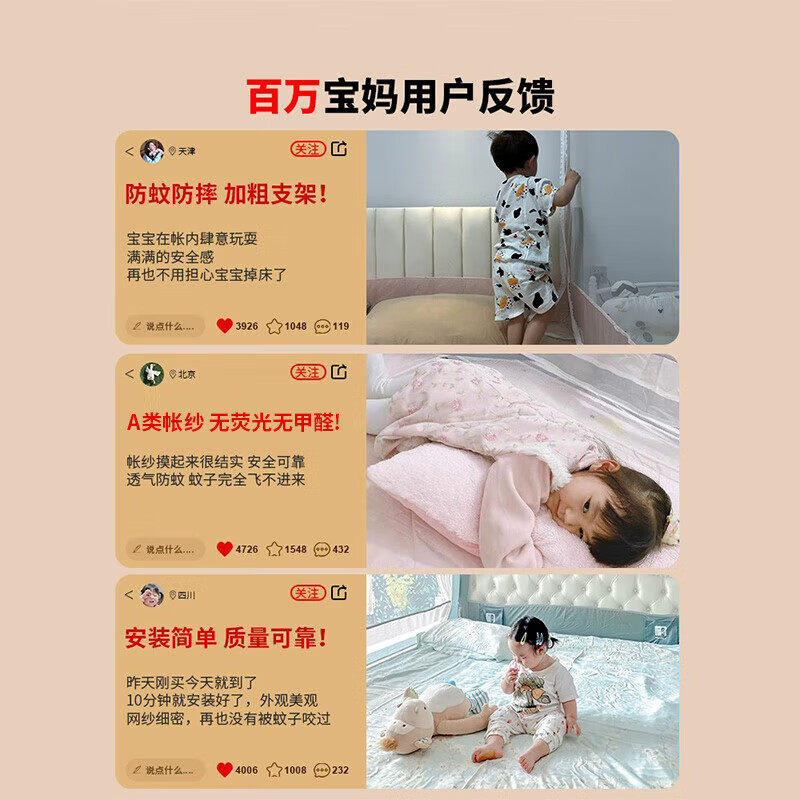 猫人抗菌防摔蚊帐家用2025新款卧室婴儿童防掉床蒙古包免安装纹账