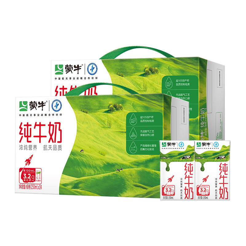 蒙牛全脂纯牛奶250ml*24盒*2箱优质乳蛋白