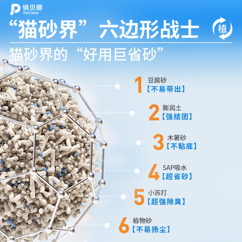 petclear5合1木薯混合猫砂除臭豆腐膨润土猫砂无尘吸水不粘底20斤