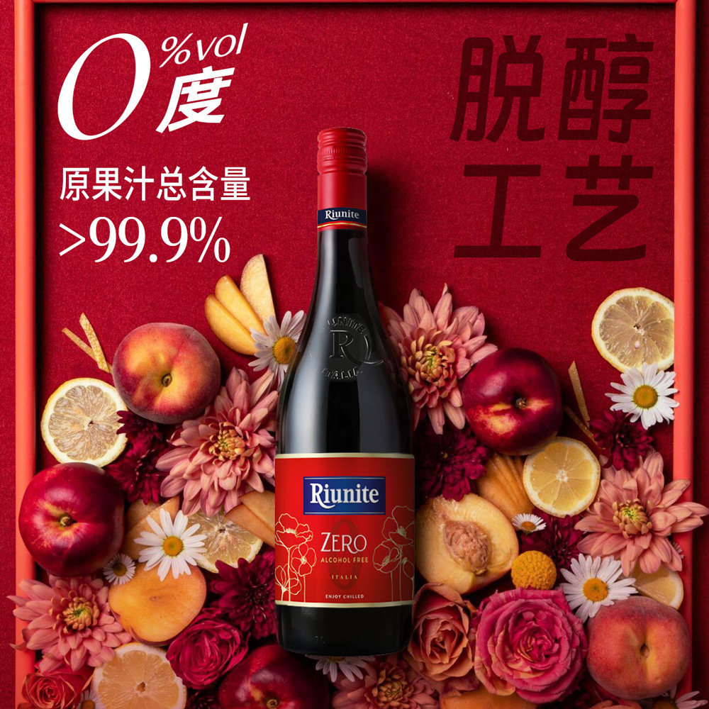 【专享】意大利优尼特原瓶进口无醇0度起泡红葡萄酒