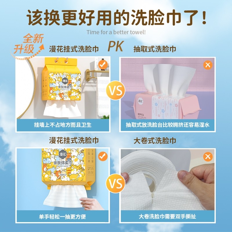 漫花悬挂抽取式洗脸巾擦脸清洁面巾一次性全棉干湿两用挂式家庭装