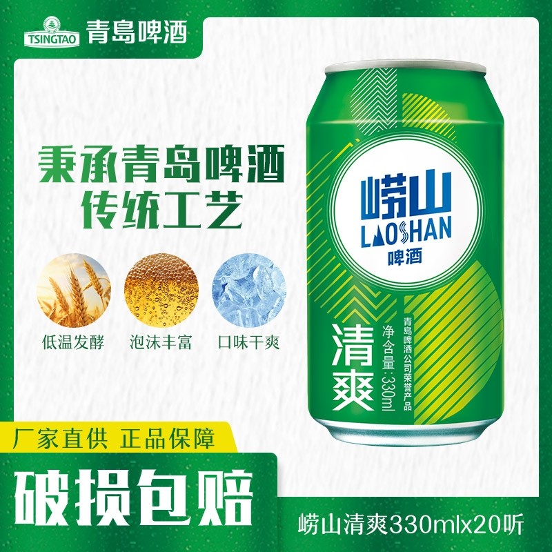 崂山啤酒清爽330ml*20听青岛啤酒传统罐装青啤国货