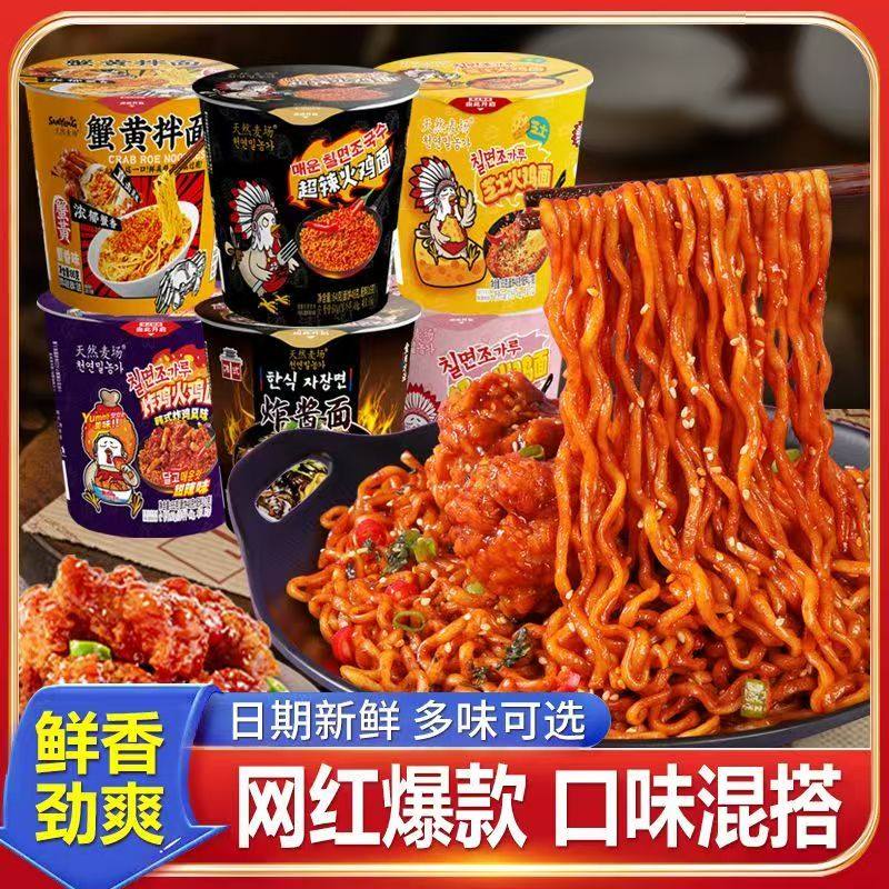 天然麦场火鸡面炸酱面奶油蟹黄拌面韩式芝士方便面桶装夜宵充饥