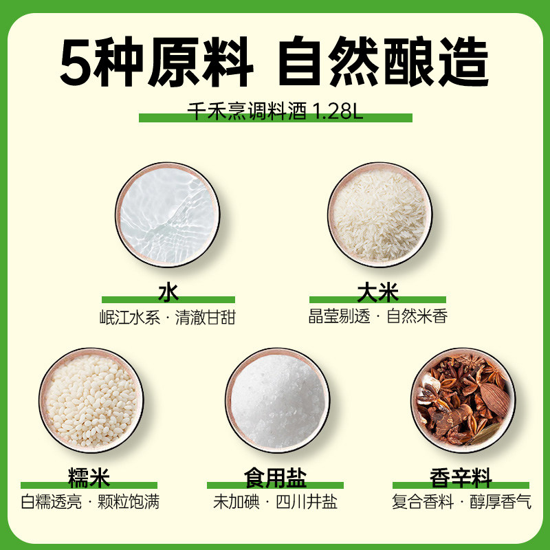 千禾厨房调味烹调料酒1.28L粮食酿造红烧调味料去腥解膻提味