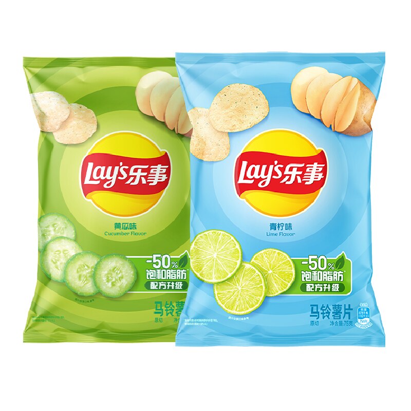 Lay’s/乐事原切薯片75g*2包(黄瓜/青柠)零食小吃休闲食品