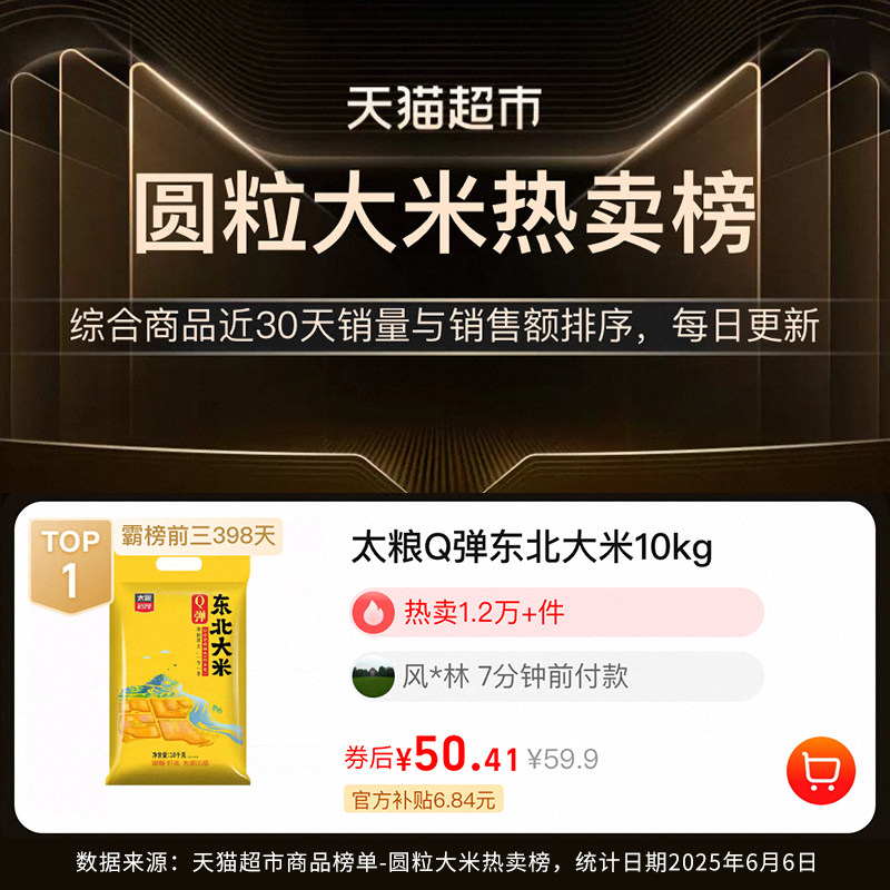 【下拉详情页享特价】太粮Q弹东北大米10kg粳米20斤圆粒珍珠大米