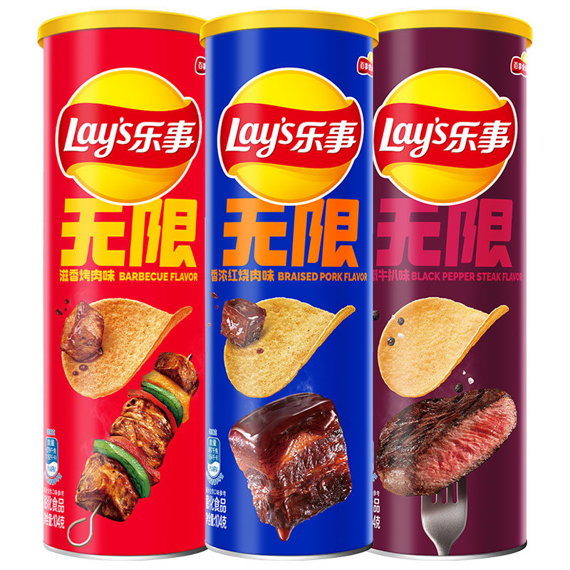 乐事无限薯片无肉不欢三连罐(烤肉/红烧肉/牛扒)104g*3罐