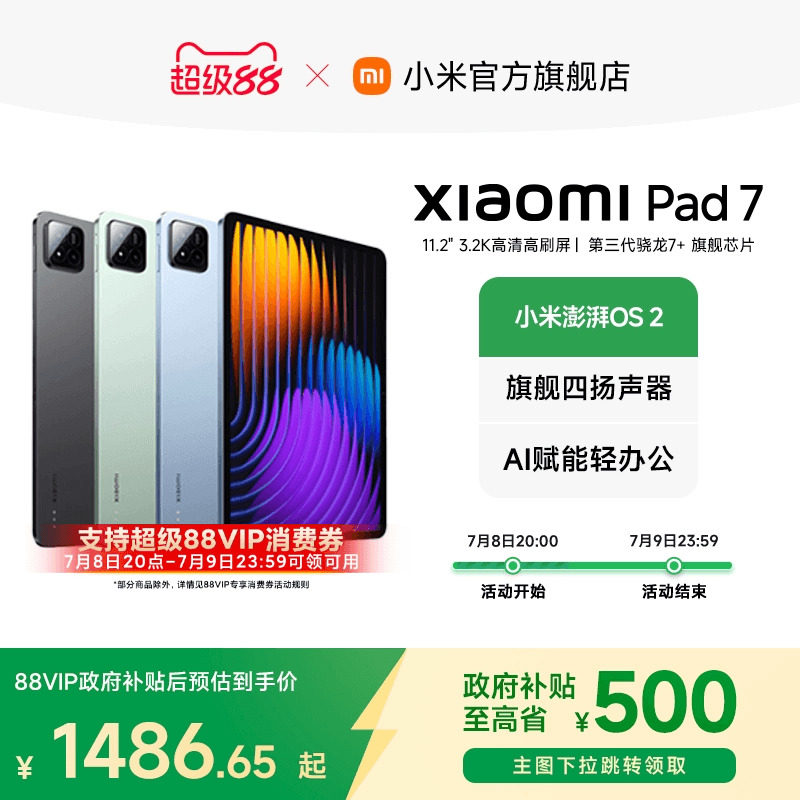 【支持88VIP消费券+政府补贴15%】小米平板7平板电脑Xiaomi Pad7办公游戏平板小米官网平板电脑政府补贴