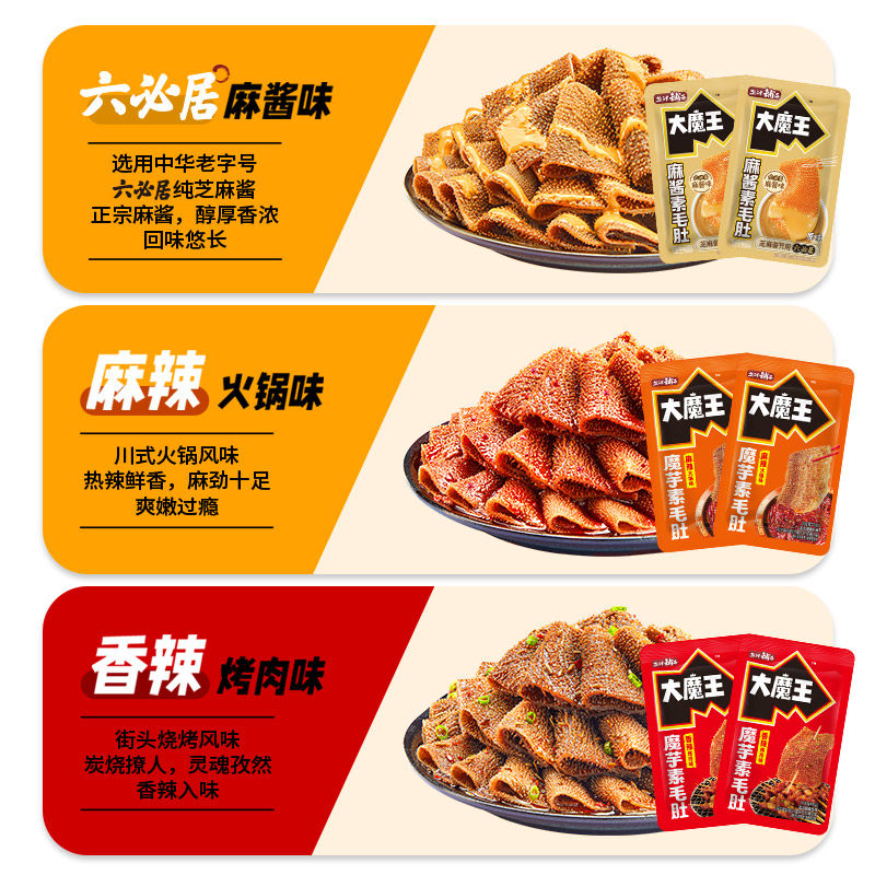 盐津铺子大魔王魔芋素毛肚多包六必居麻酱爽辣小零食
