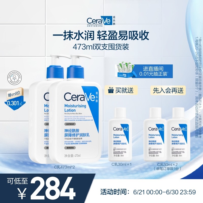 张凌赫同款CeraVe适乐肤C乳保湿修护乳液身体乳
