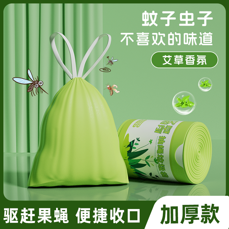 加厚艾草清香抽绳香氛大号特厚一次性手提收口厨卫驱虫塑料袋驱蚊