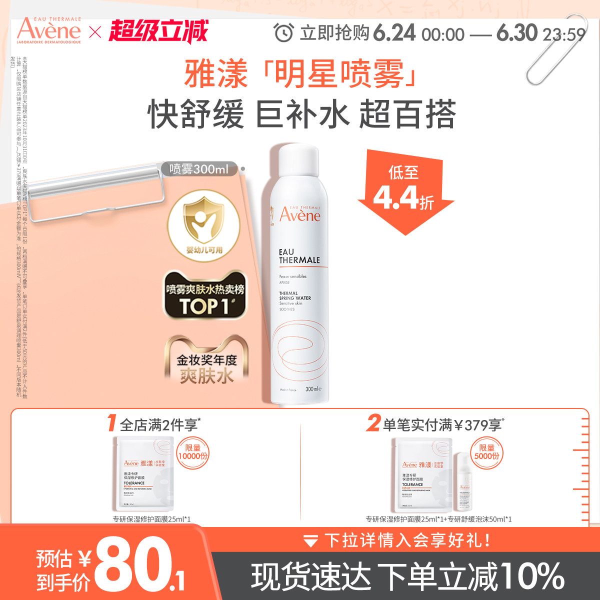 【立即抢购】雅漾舒泉调理喷雾补水舒缓爽肤敏感肌妆前湿敷保湿水