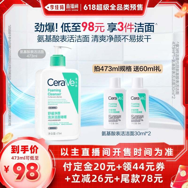 【李佳琦超级全品类预售】CeraVe适乐肤氨基酸敏肌洗面奶*