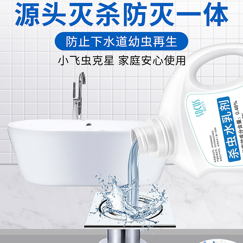 下水道小飞虫灭杀神器卫生间厕所地漏管道疏通室内蛾蚋杀虫剂蟑螂