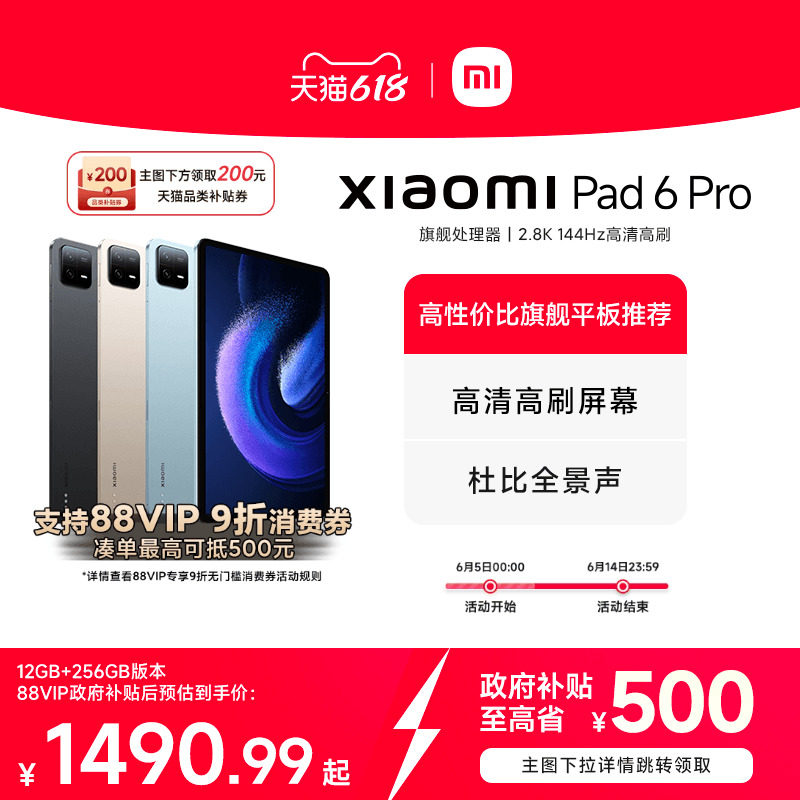 【88VIP 9折消费券+政府补贴15%】小米平板6Pro平板电脑办公2.8K144HZ高清平板