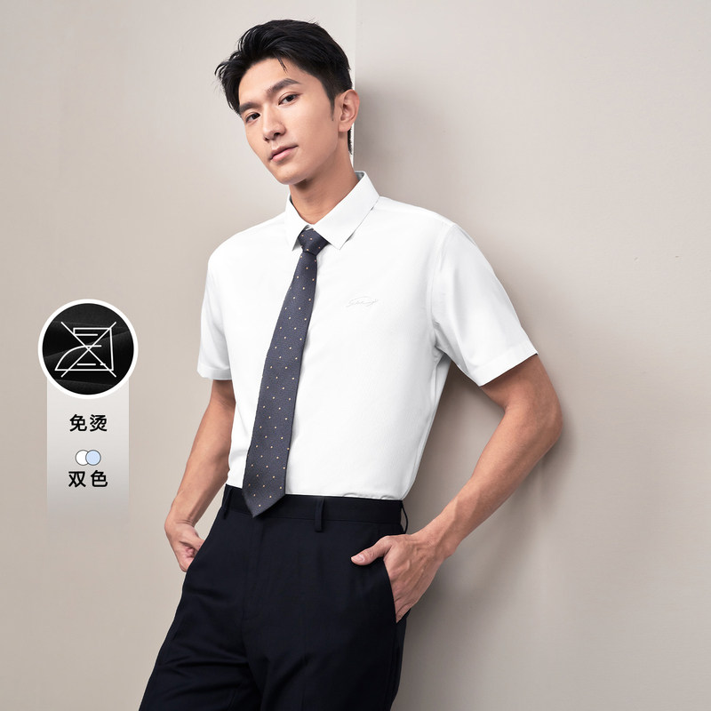 HLA/海澜之家轻商务衫及透气短袖通勤正装衬衫夏新父亲节白衬衣男