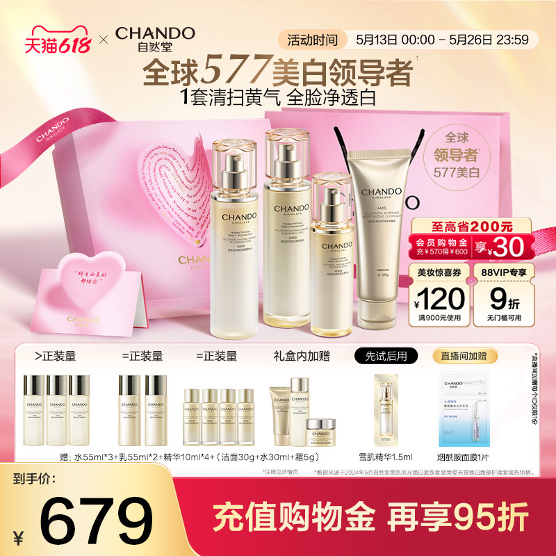 【618】自然堂577美白套组雪肌追光礼盒水乳精华美白透亮熬夜黄脸