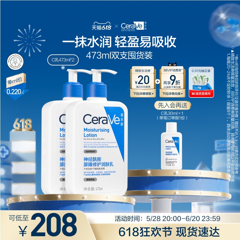 【618疯抢】张凌赫同款CeraVe适乐肤C乳保湿修护乳液身体乳
