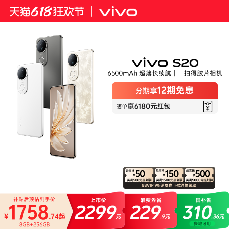 【国补立省15%+9折88VIP券】vivo S20智能5G柔光人像拍照轻薄长续航大电池学生直屏手机官方旗舰店