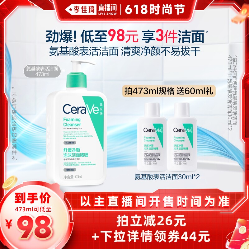 【李佳琦直播间时尚节】CeraVe适乐肤氨基酸敏肌洗面奶*