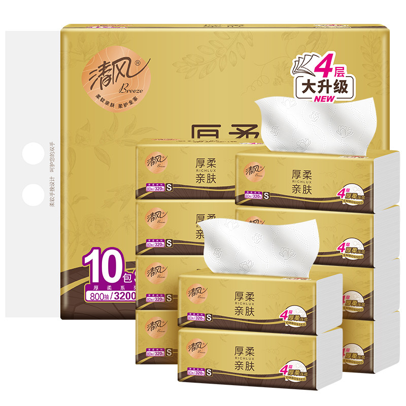 【李昀锐同款】清风金装厚柔抽纸加厚4层80抽10包面巾餐巾卫生纸
