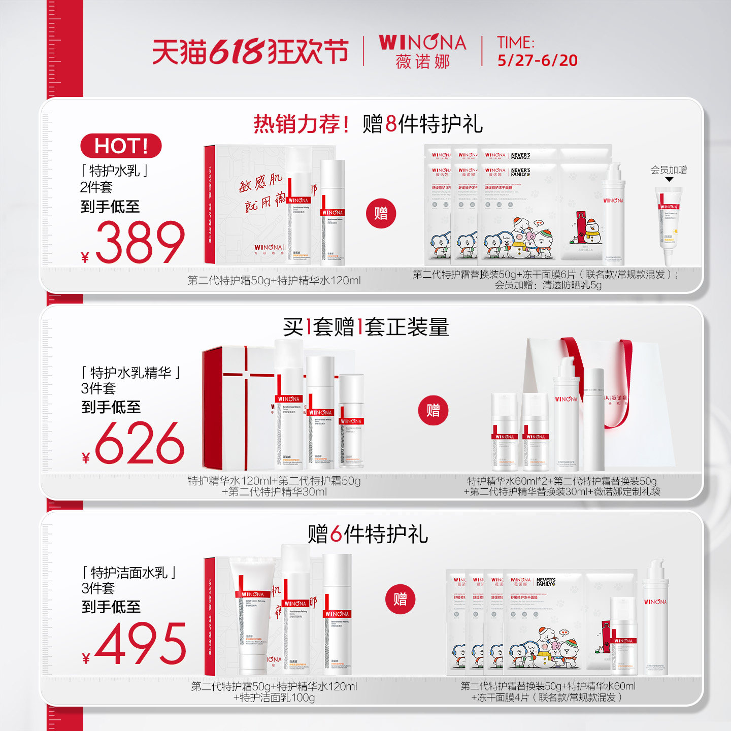 【618狂欢节】薇诺娜敏感肌水乳套装特护霜舒敏保湿维稳补水修护