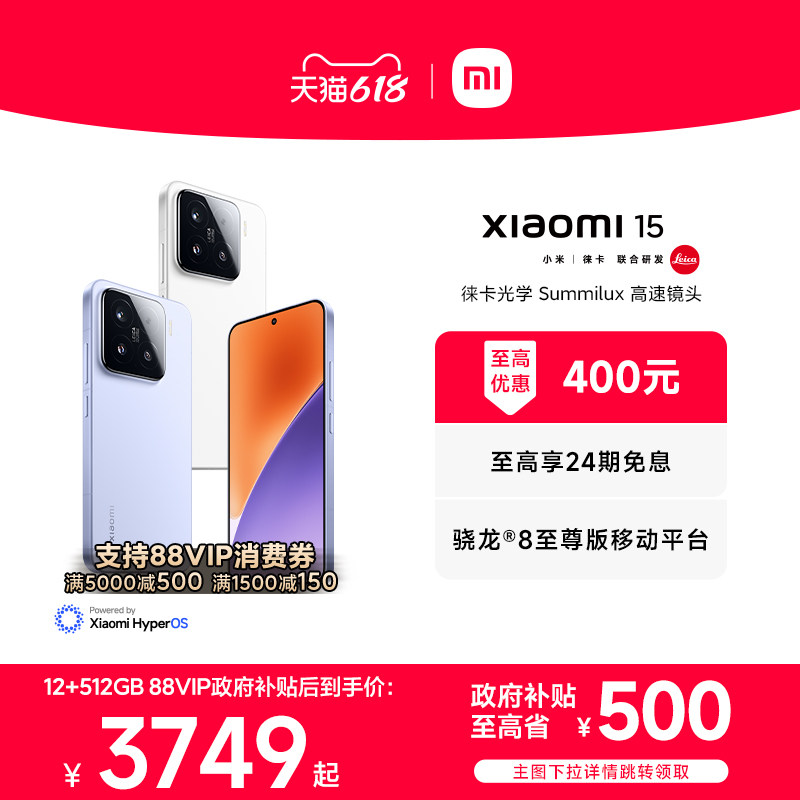 【支持88券&国补】小米15手机新品新款上市小米徕卡联合研发小米官方旗舰店官网高通骁龙8至尊版国补手机