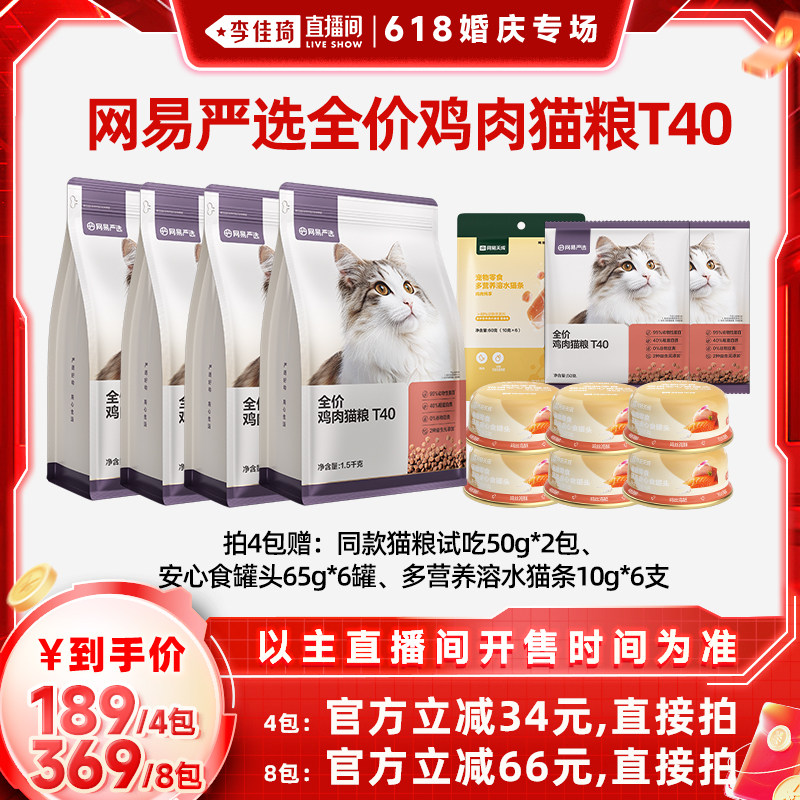 【李佳琦直播间婚庆专场】网易严选T40全价鸡肉猫粮美毛鲜肉幼成