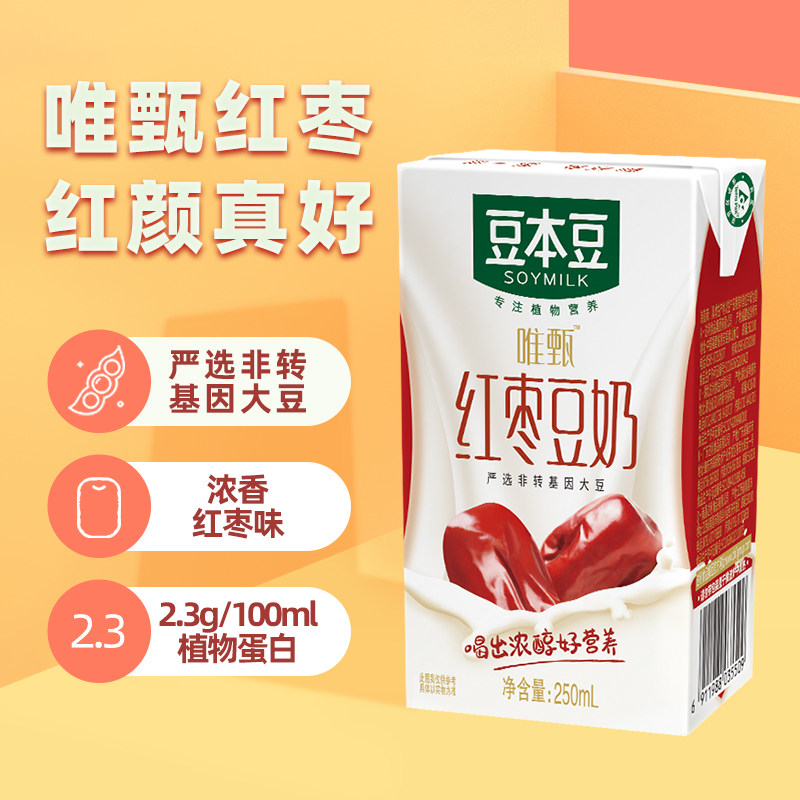 豆本豆唯甄红枣豆奶250ml*24盒新旧包装随机发早餐豆奶礼盒装