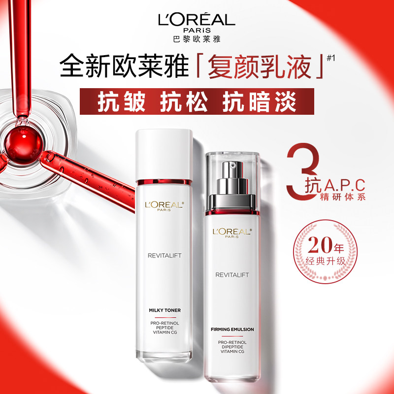 【抢现货!618达人推荐】欧莱雅复颜水乳套装护肤紧致抗皱保湿O