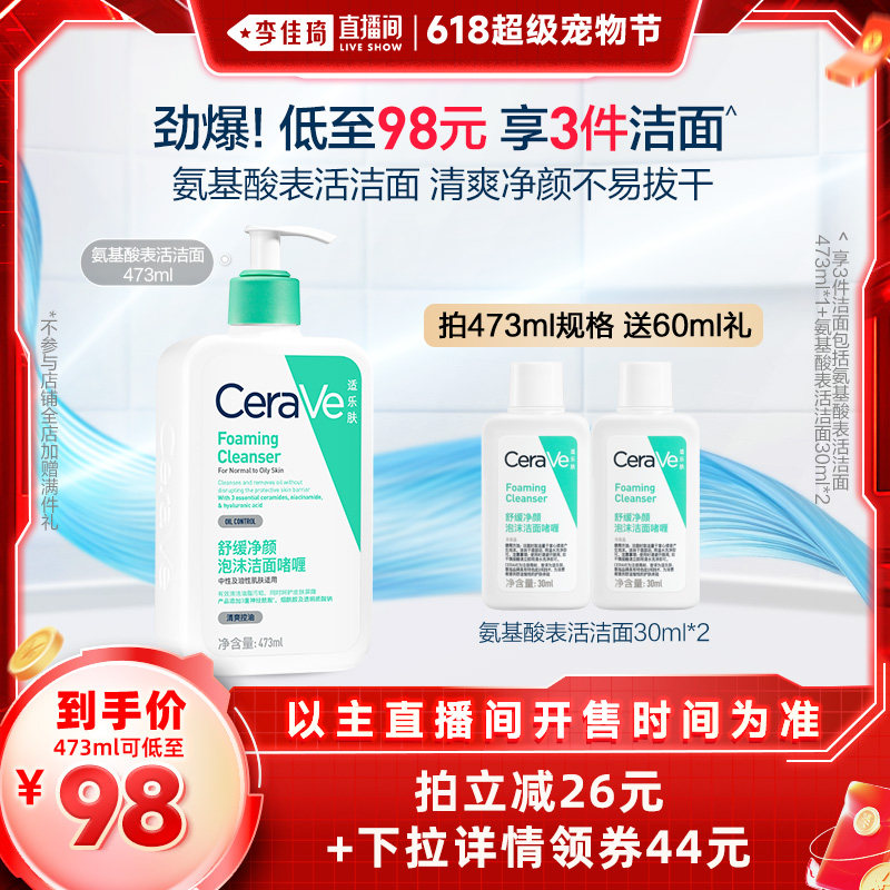 【李佳琦直播间宠物节】CeraVe适乐肤氨基酸敏肌洗面奶*