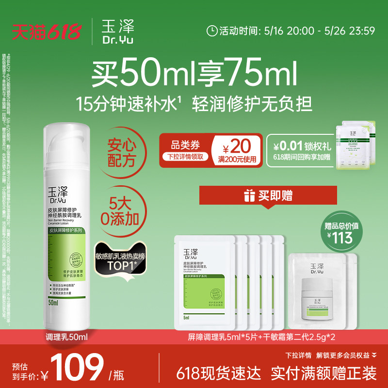 【618抢先购】玉泽皮肤屏障修护神经酰胺调理乳干敏肌舒缓乳液